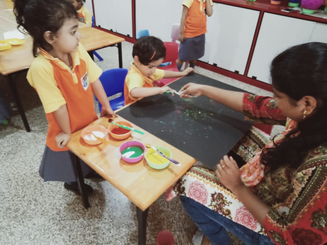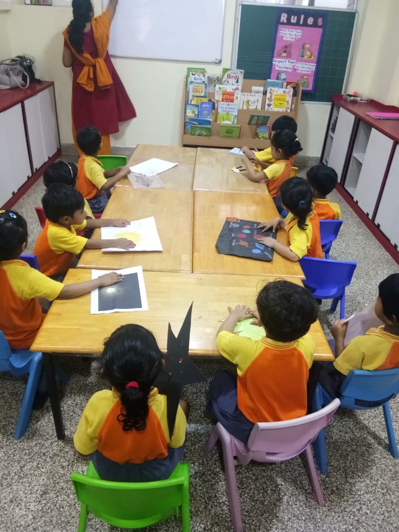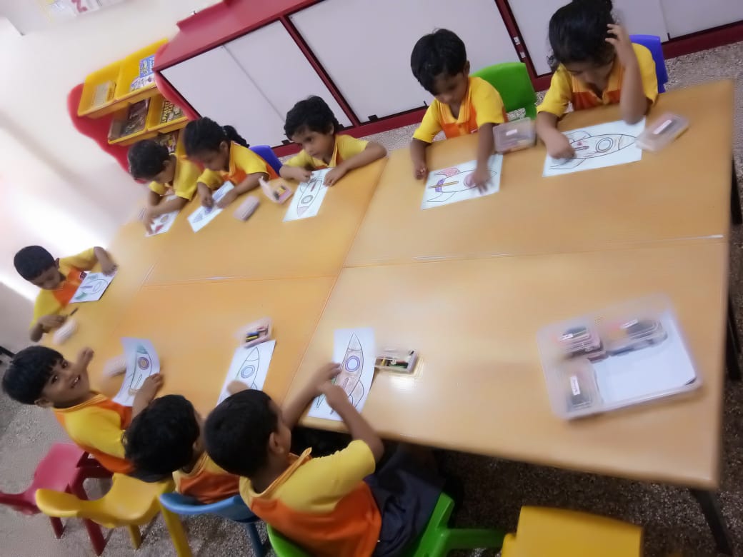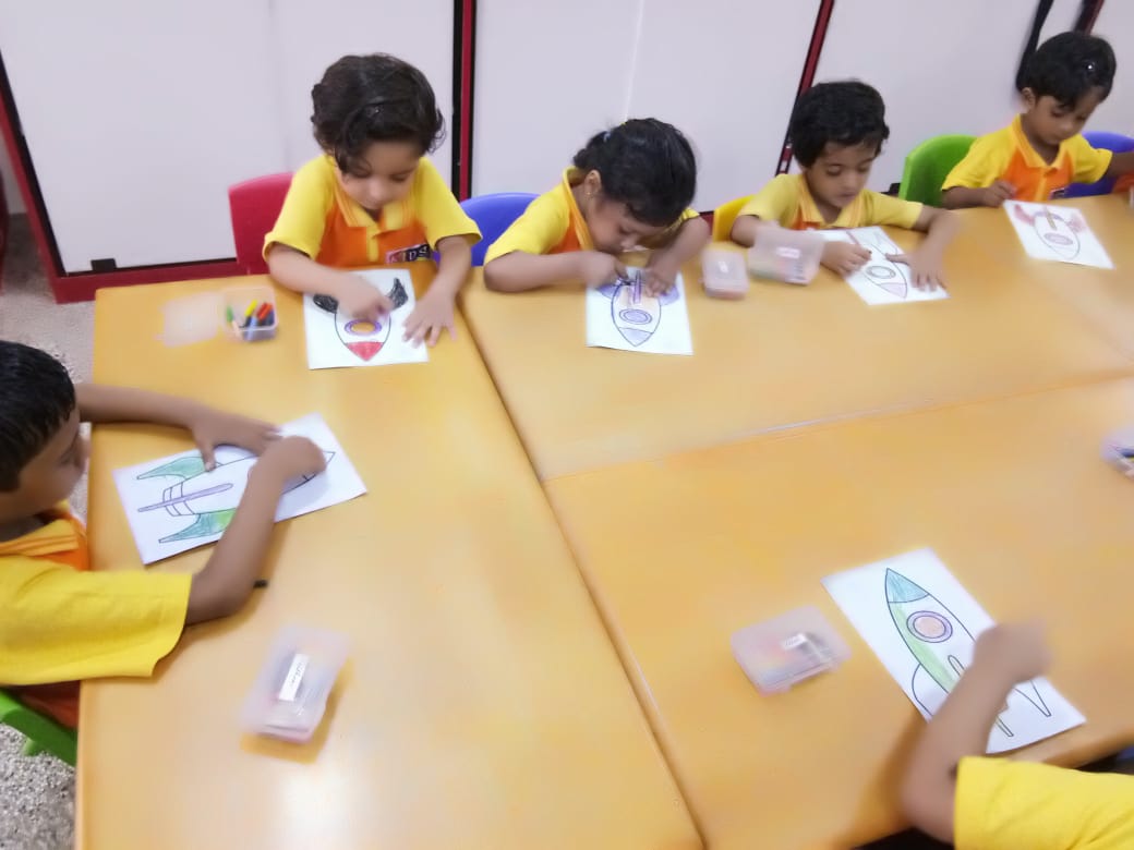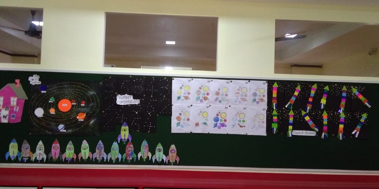 Our theme for the month was ‘The Universe’. We introduced them to what lies beyond the skies – space and the galaxies, and then the solar system. We made some paper mache planets and the children really enjoyed sticking layers of newspaper on the balloons. They then proudly hung it up in their classrooms. They also made ‘Name Rockets’ where they learnt to spell their names and write it down. At Kids Joy we believe that learning should be fun. As much as we can, we try and make it interesting for the children by using art, craft. games, etc. Therefore even a simple exercise like learning to write their name, can be made so much more fun by using methods like these.