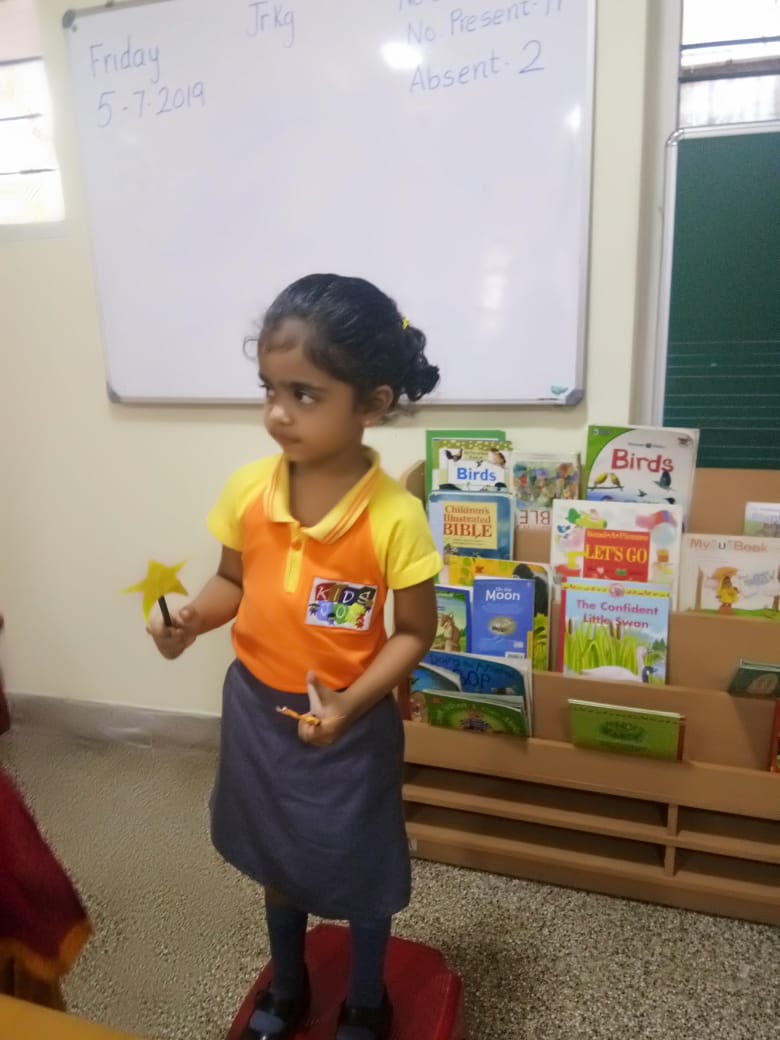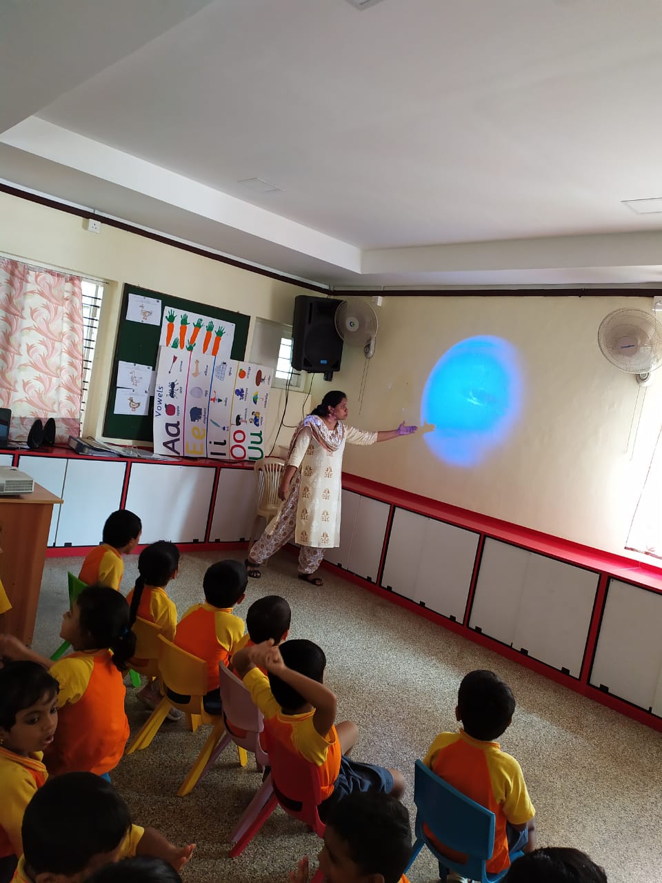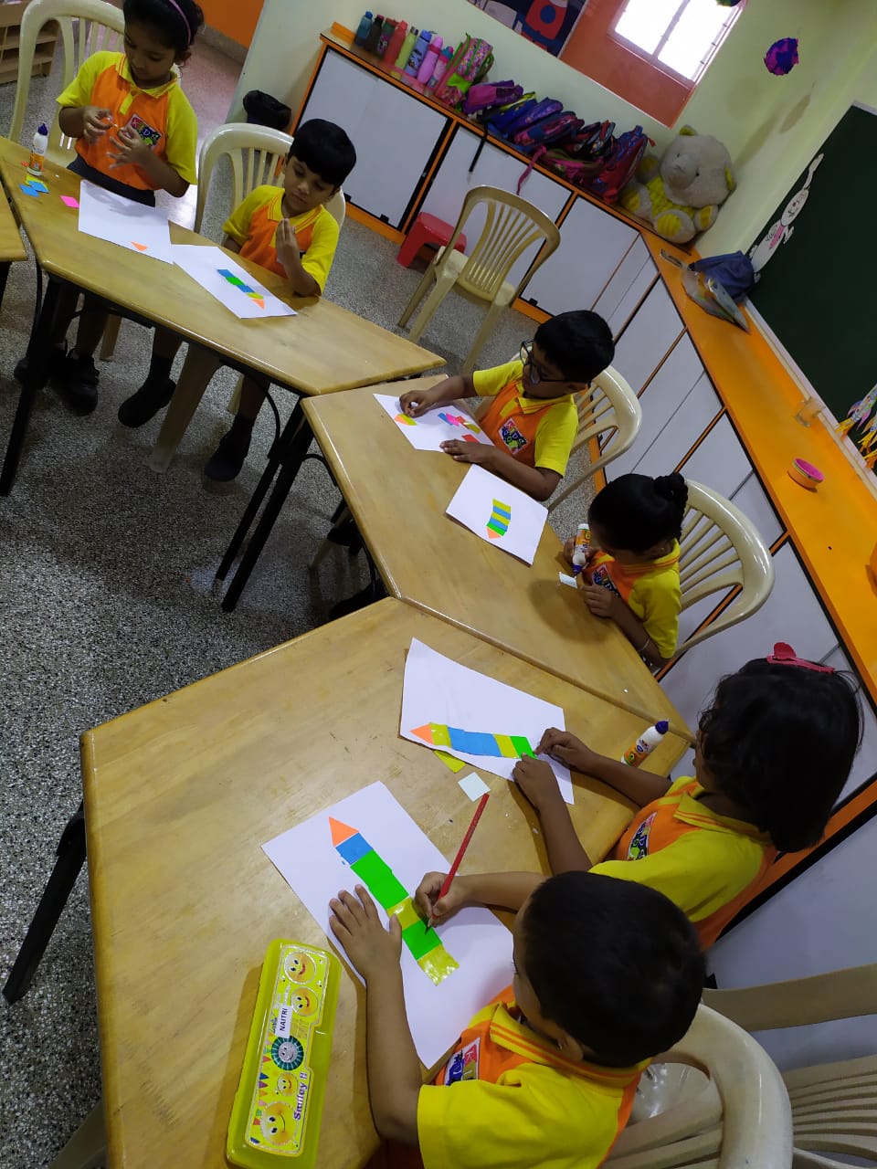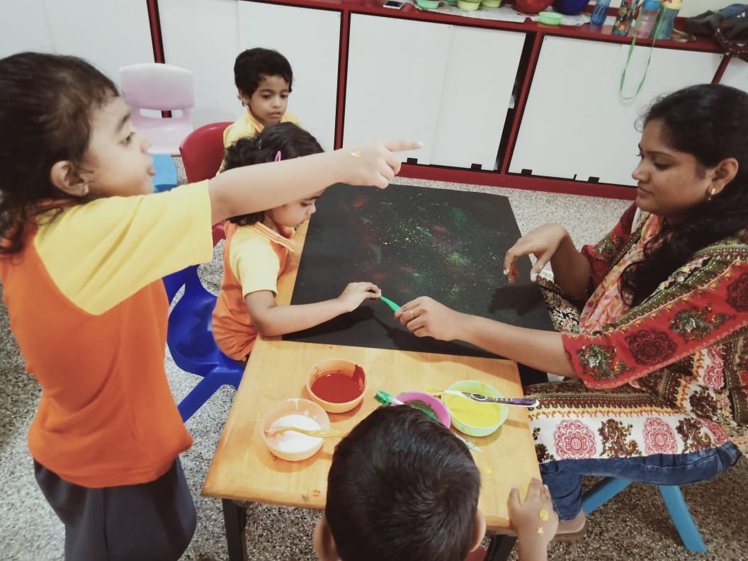 Our theme for the month was ‘The Universe’. We introduced them to what lies beyond the skies – space and the galaxies, and then the solar system. We made some paper mache planets and the children really enjoyed sticking layers of newspaper on the balloons. They then proudly hung it up in their classrooms. They also made ‘Name Rockets’ where they learnt to spell their names and write it down. At Kids Joy we believe that learning should be fun. As much as we can, we try and make it interesting for the children by using art, craft. games, etc. Therefore even a simple exercise like learning to write their name, can be made so much more fun by using methods like these.