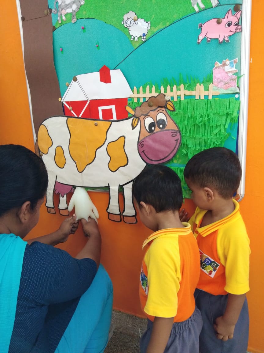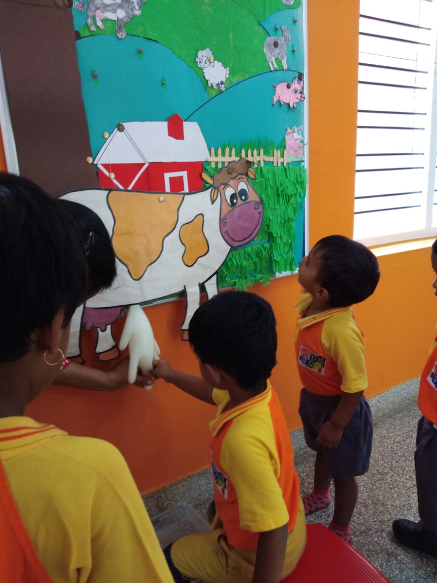 Our theme for the month was the ‘Farm’. The children really enjoyed learning all about the different farm animals, their food, their young ones and interesting facts about them. A fun science experience was milking the cow!