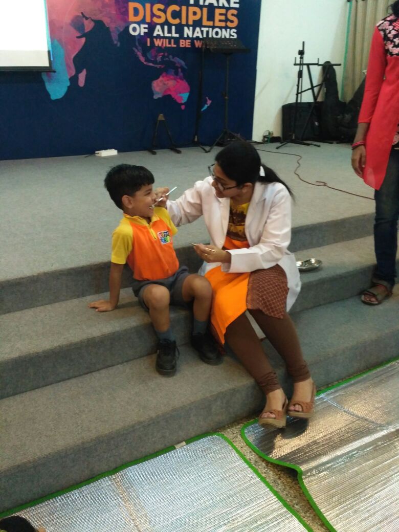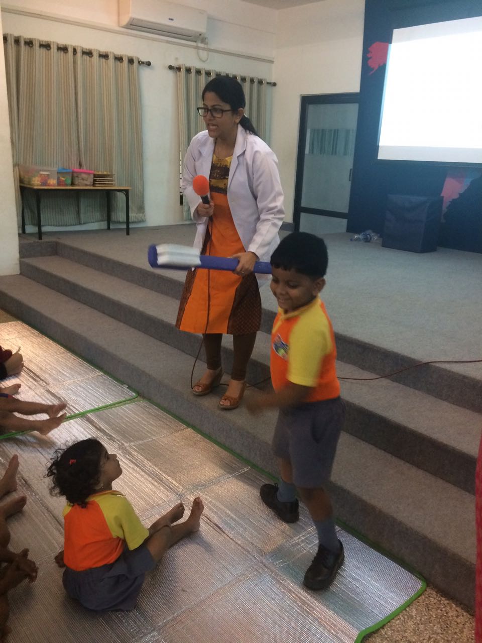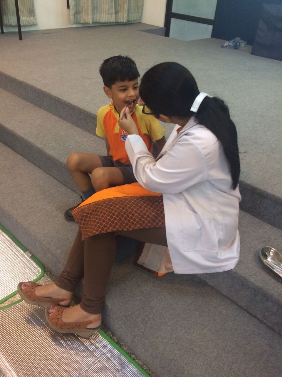 We had a specialist dentist, Dr. Vincy, come in one day and talk to the children about what a dentist does and how to keep their teeth clean. She brought a life size toothbrush with her and the children had a blast learning about dental hygiene.
