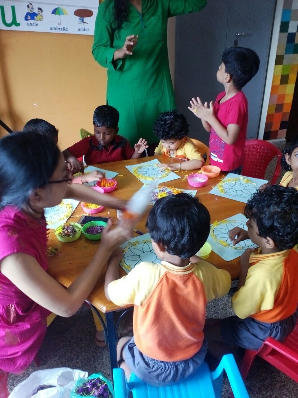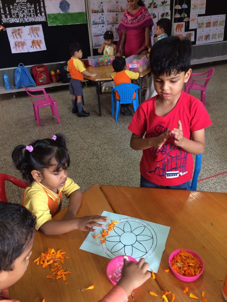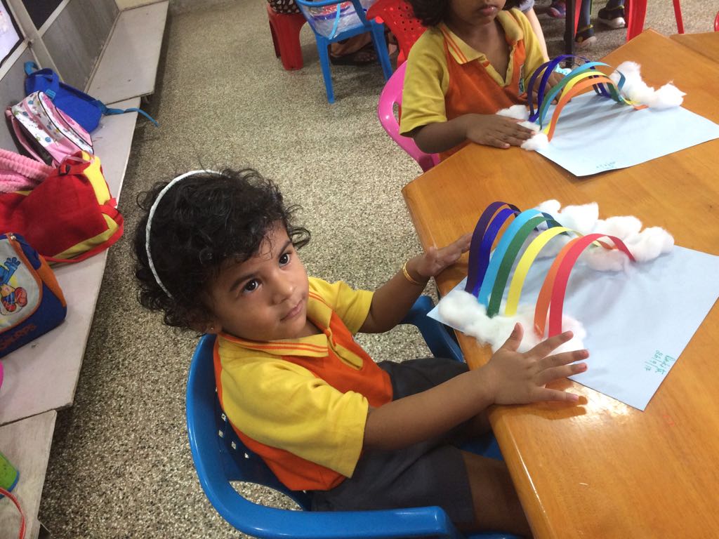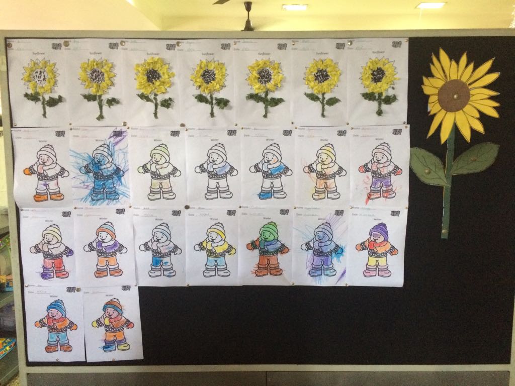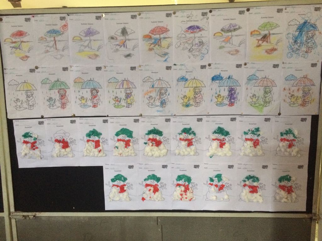 Last month at Kids Joy, our theme was Seasons. We went through summer, monsoon, winter and spring. The school was decorated according to the theme, with a huge cut out of a girl holding an umbrella to greet you when you enter! The children enjoyed learning about how the sun is so important in summer, the water cycle, how to dress during winter and about the different flowers, birds and new life that we see in Spring.