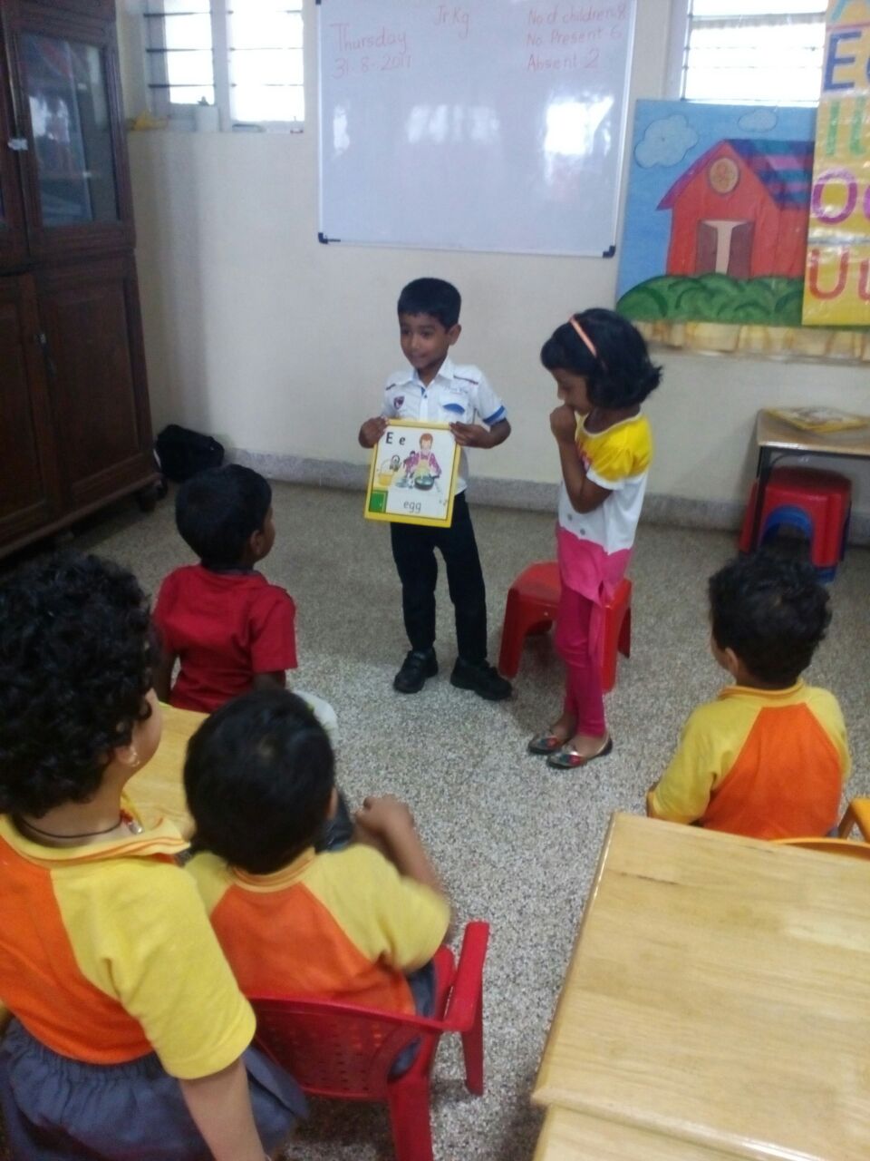 Another highlight was show and tell where each of them bought a flower and spoke about it. The next one was an object that is used during the monsoon. Many children came well prepared and it was a great opportunity for them to stand on stage and improve their public speaking skills. The presentations too were excellent and some parents took a lot of trouble to make it interesting for the children.