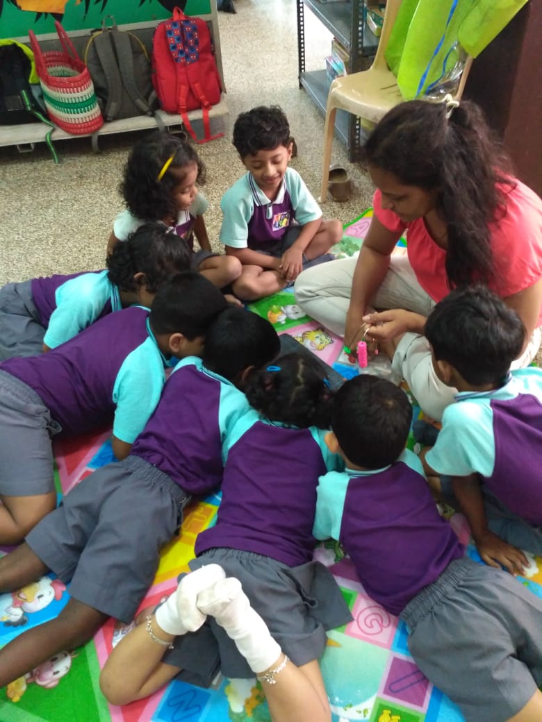 Our theme for the month was colours and the children learnt about the different colours of the rainbow and what happens when you mix colours. They did a few experiments with colours and enjoyed singing different songs about colours.