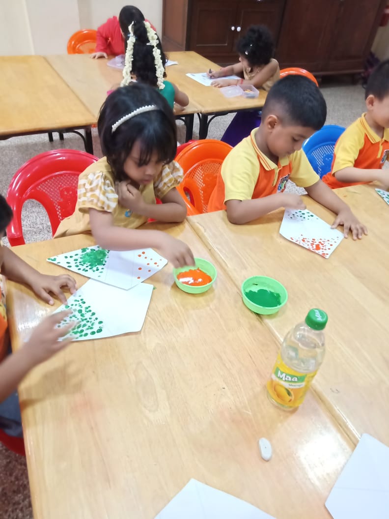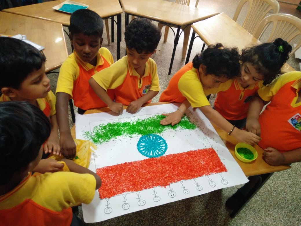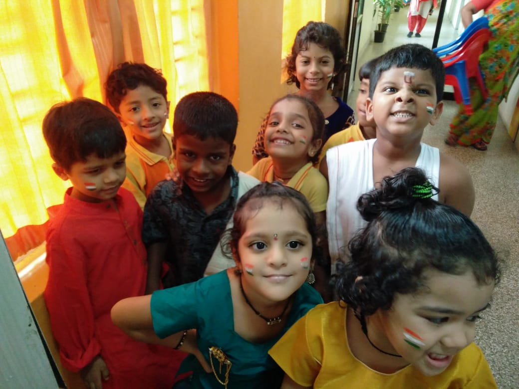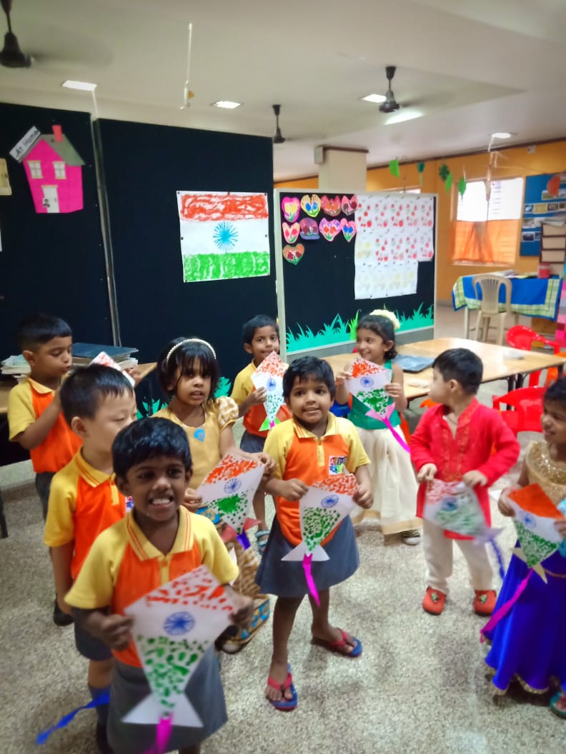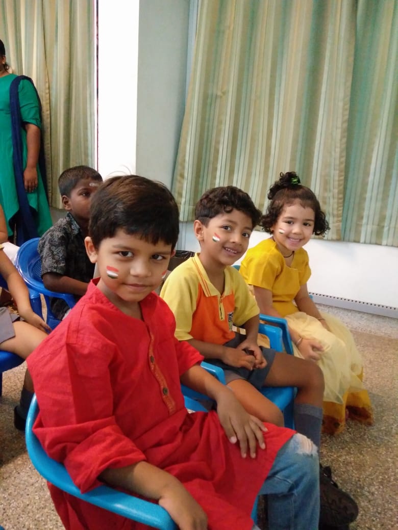 Independence Day was celebrated in style with a naval officer hoisting the flag. The children came dressed in traditional clothes and did a craft based on the Indian flag.