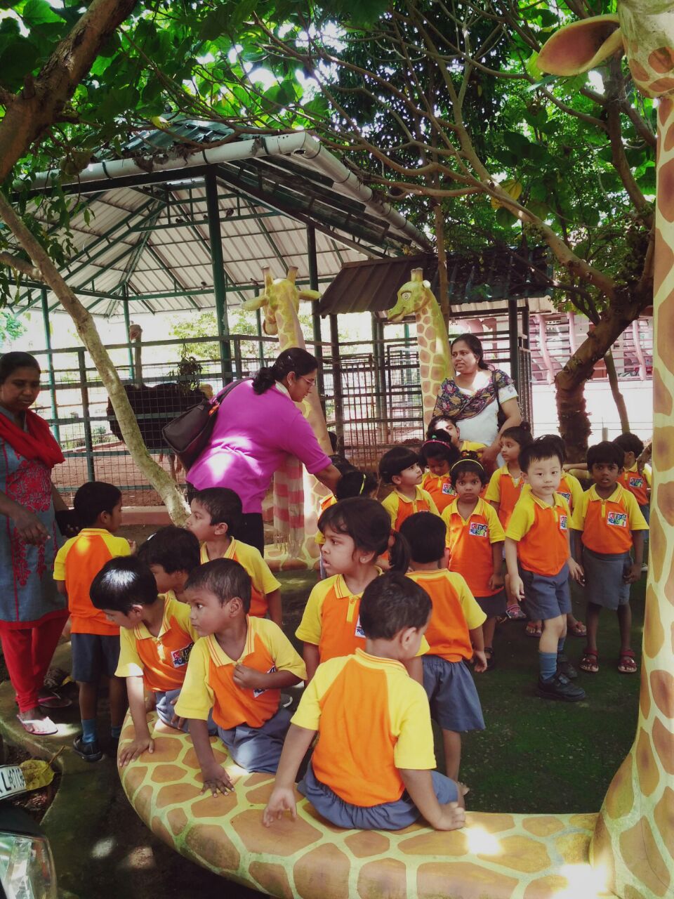 We’ve had an exciting first month of school. By the first week, most of the children had settled down and got into the routine of school. The theme for the month was a fun one – Jungle: Animals, Birds and Insects. They learnt about the different creatures found in a jungle, through a wide variety of visuals: pictures, videos, books and finally the crux was the outing to a small zoo where they saw different types of animals and birds up close. The highlight was seeing the ostrich who was in its element!