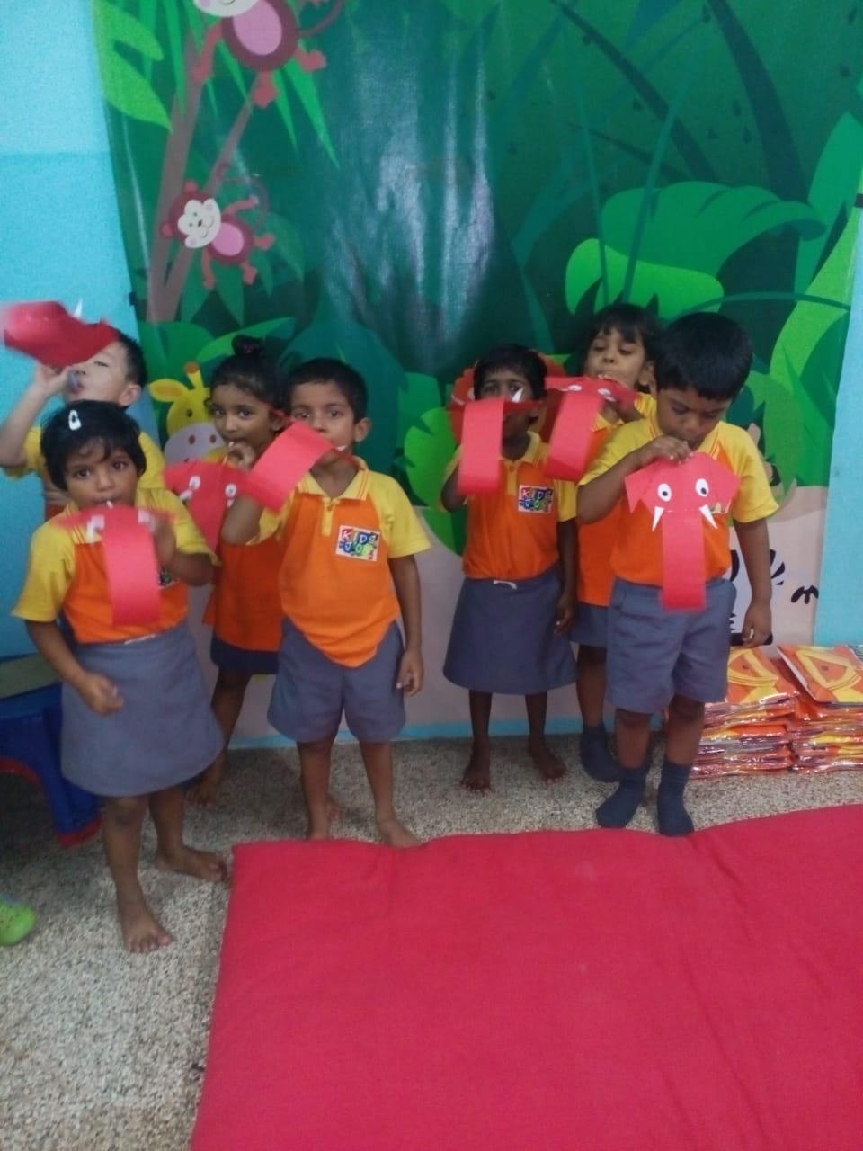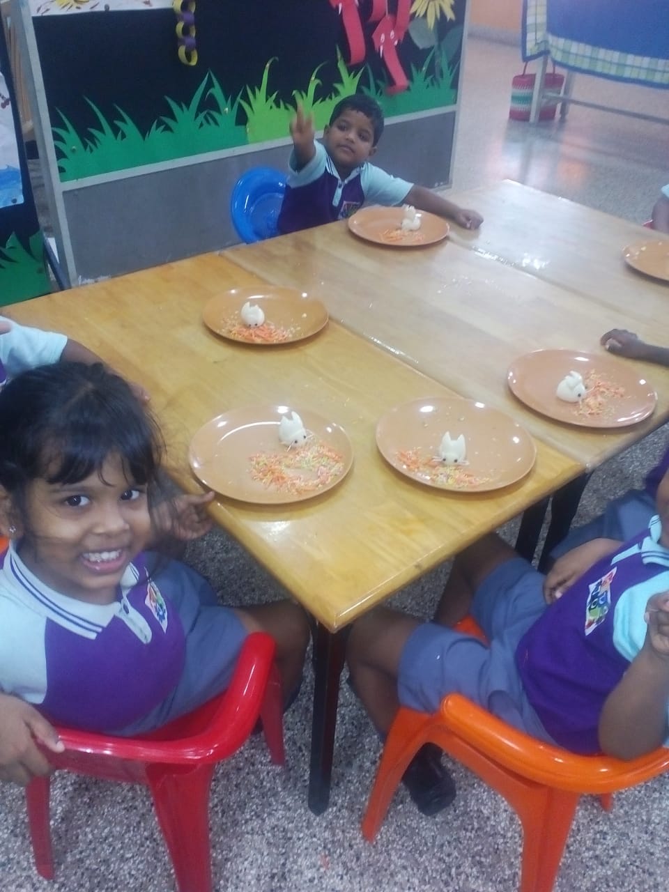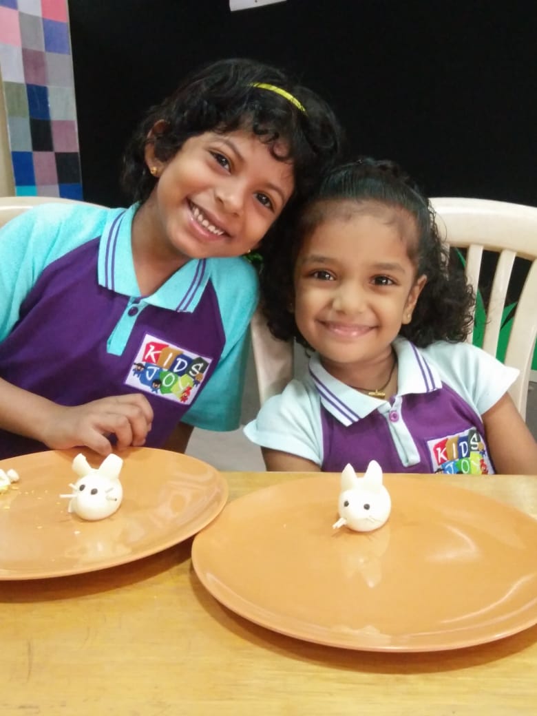 At Kids Joy, we don’t view ‘extra curricular activities’ apart from ‘academics’. But we view it as a mesh that is intertwined and part of everything we do for the wholesome development of the child. So the children enjoyed making snakes while learning reptiles and , grasshoppers and spider webs while learning about insects. They also did an elephant craft and bird craft which was proudly displayed in their achievement chart. Another exciting activity was making bear sandwiches and rabbit salad!