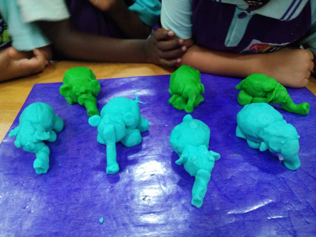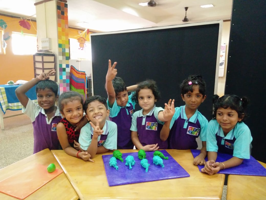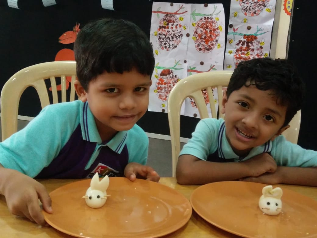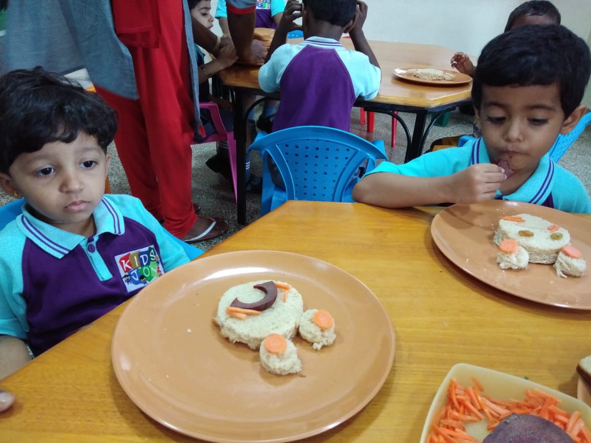 At Kids Joy, we don’t view ‘extra curricular activities’ apart from ‘academics’. But we view it as a mesh that is intertwined and part of everything we do for the wholesome development of the child. So the children enjoyed making snakes while learning reptiles and , grasshoppers and spider webs while learning about insects. They also did an elephant craft and bird craft which was proudly displayed in their achievement chart. Another exciting activity was making bear sandwiches and rabbit salad!